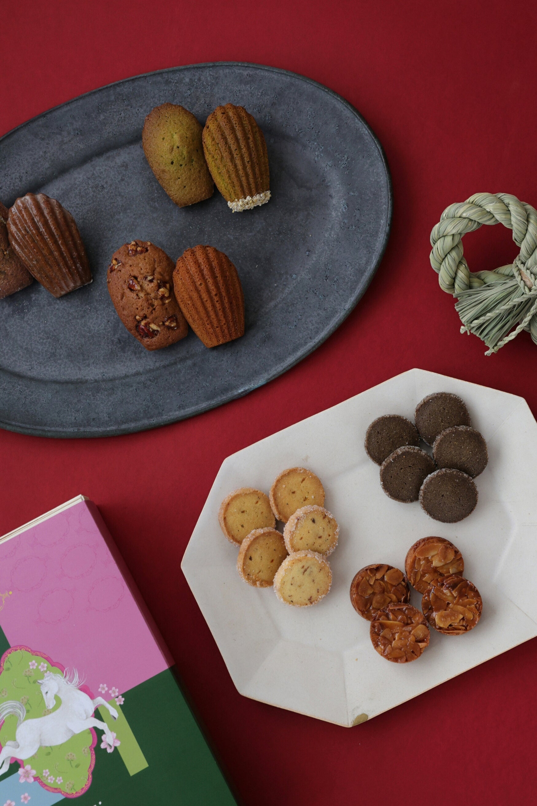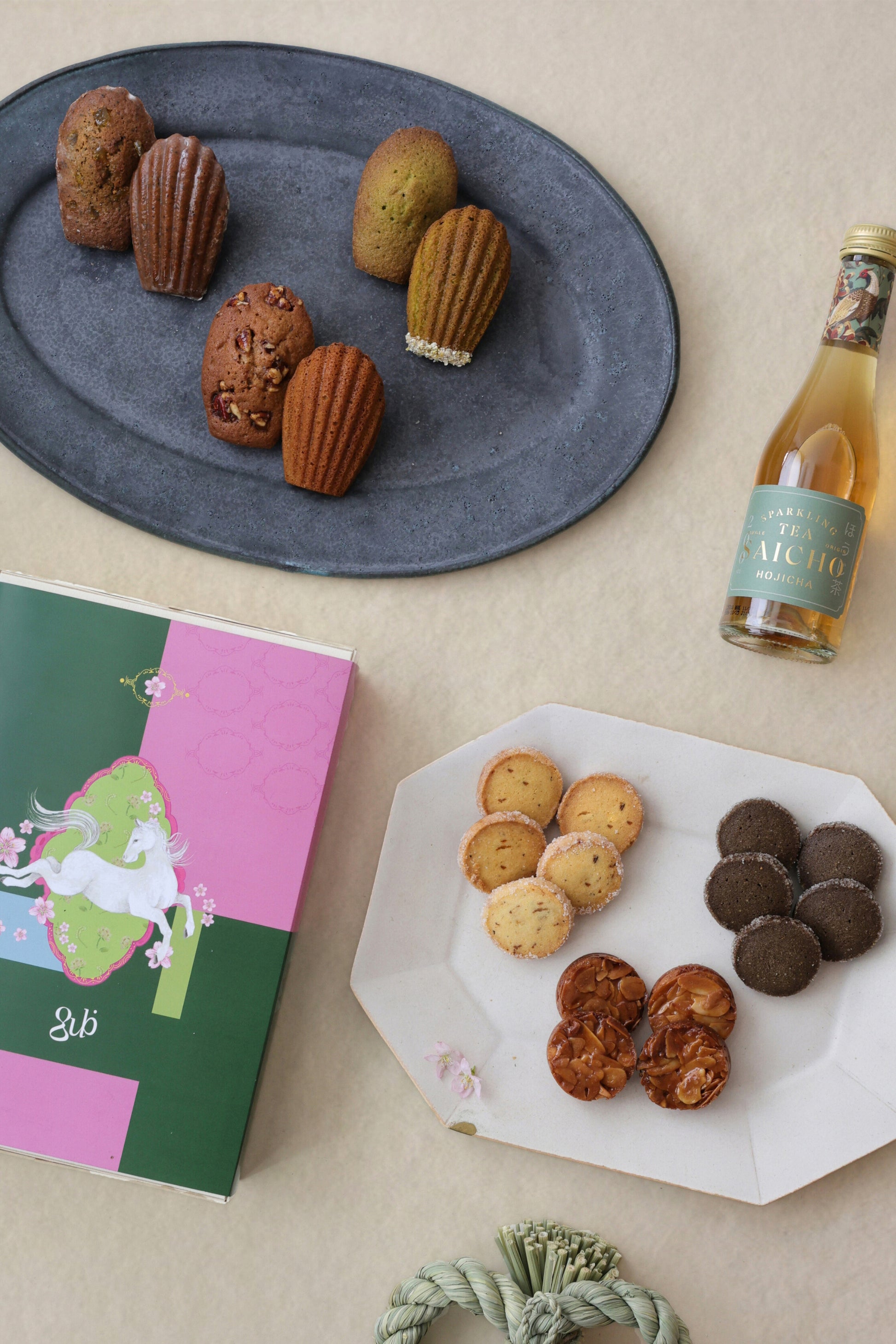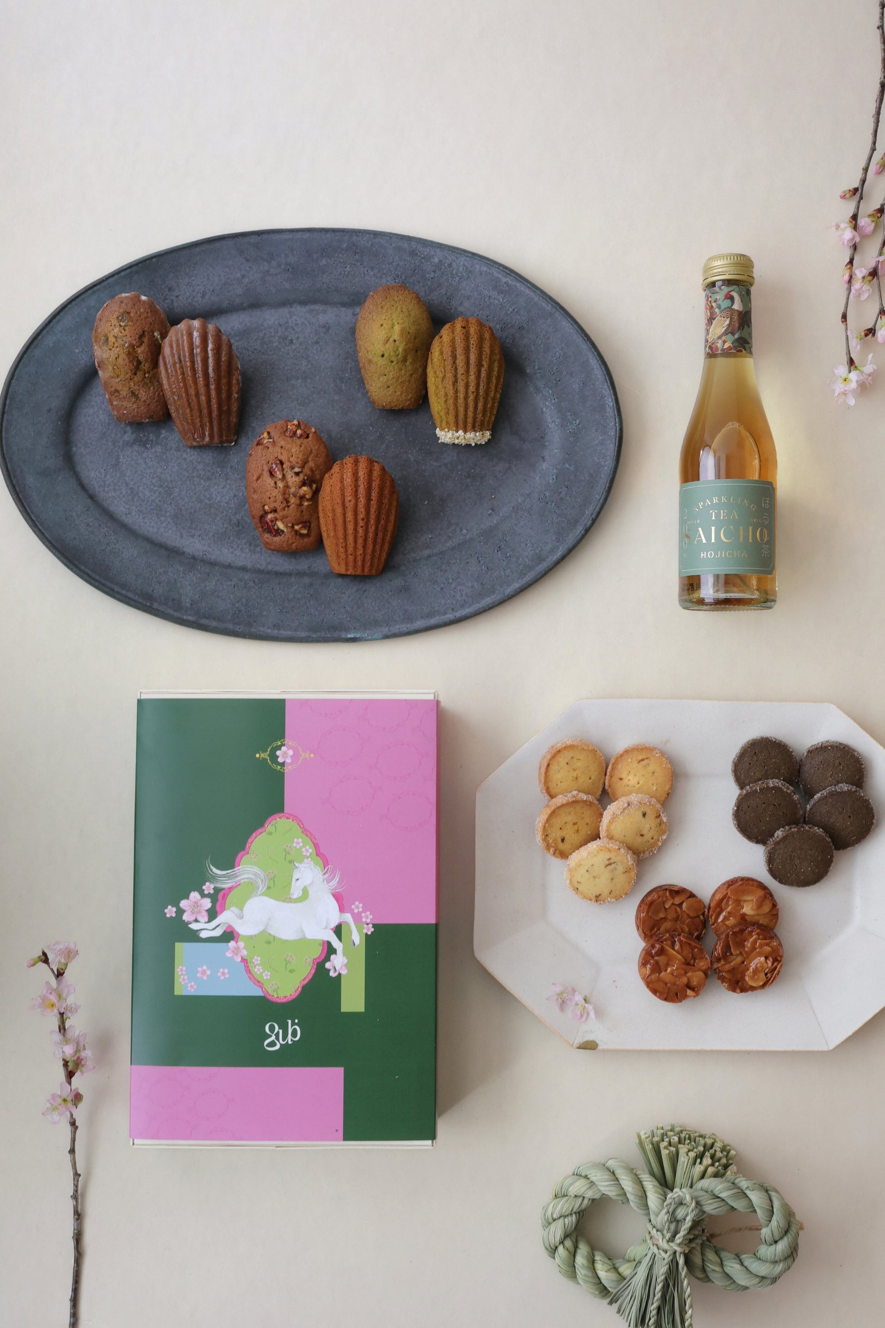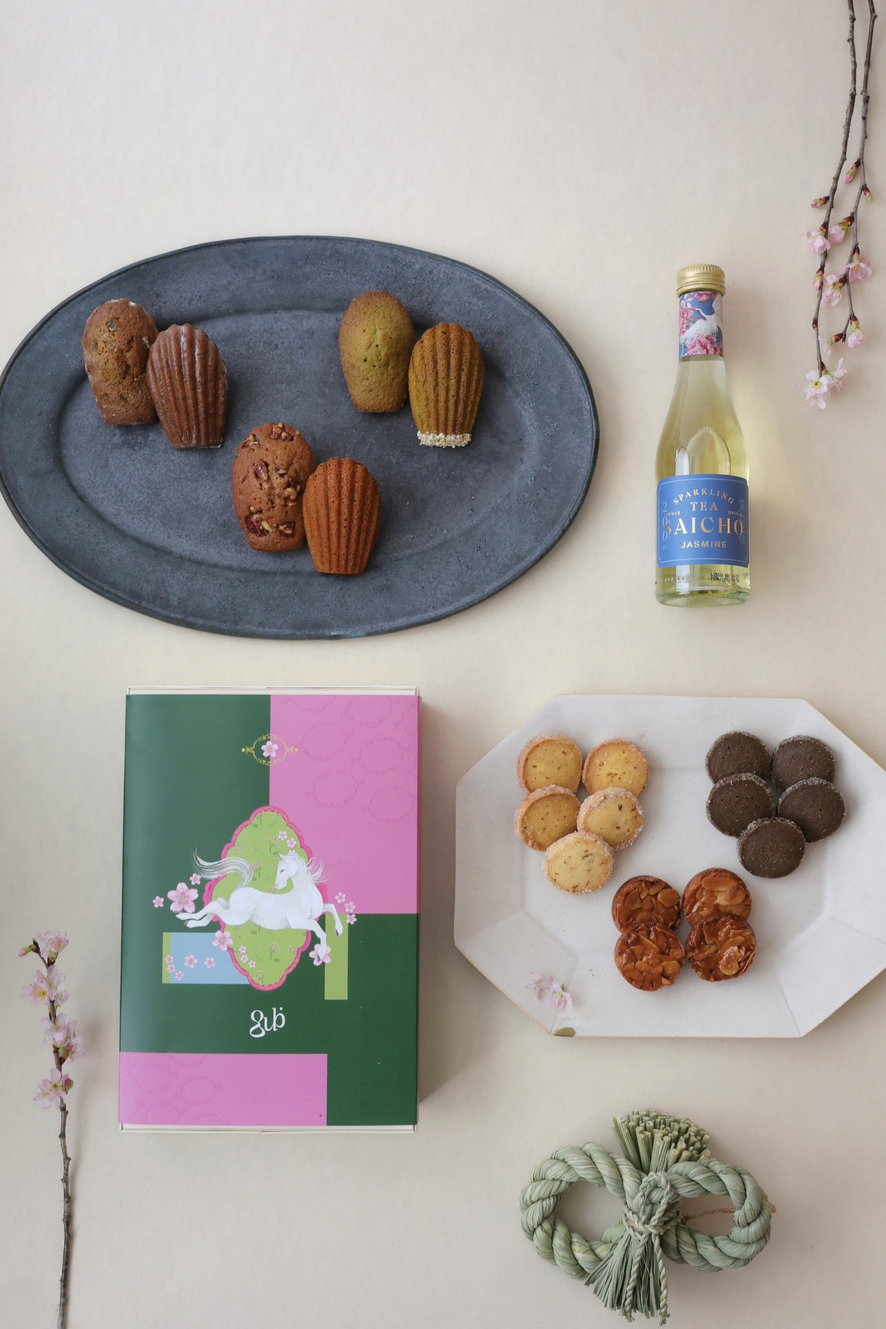 我們特意邀請日本設計師,以一種溫柔的新語彙來迎接新春:捨去單一的紅色喧囂,改以春日花開的粉綠與藍調,讓色彩像暖風一樣輕拂心頭。盒面上,一匹白馬躍過櫻花海,花瓣隨勢飛舞,像是在為新年的每一步灑下祝福;這「錦馬添花」的畫面,既有動感也有詩意。禮盒內匯聚六款手作點心,每一口都是匠心與記憶的溫度,象徵六六大順,願每個家庭在新的一年裡馬上有福、年年有餘、Horse(好事)成雙。